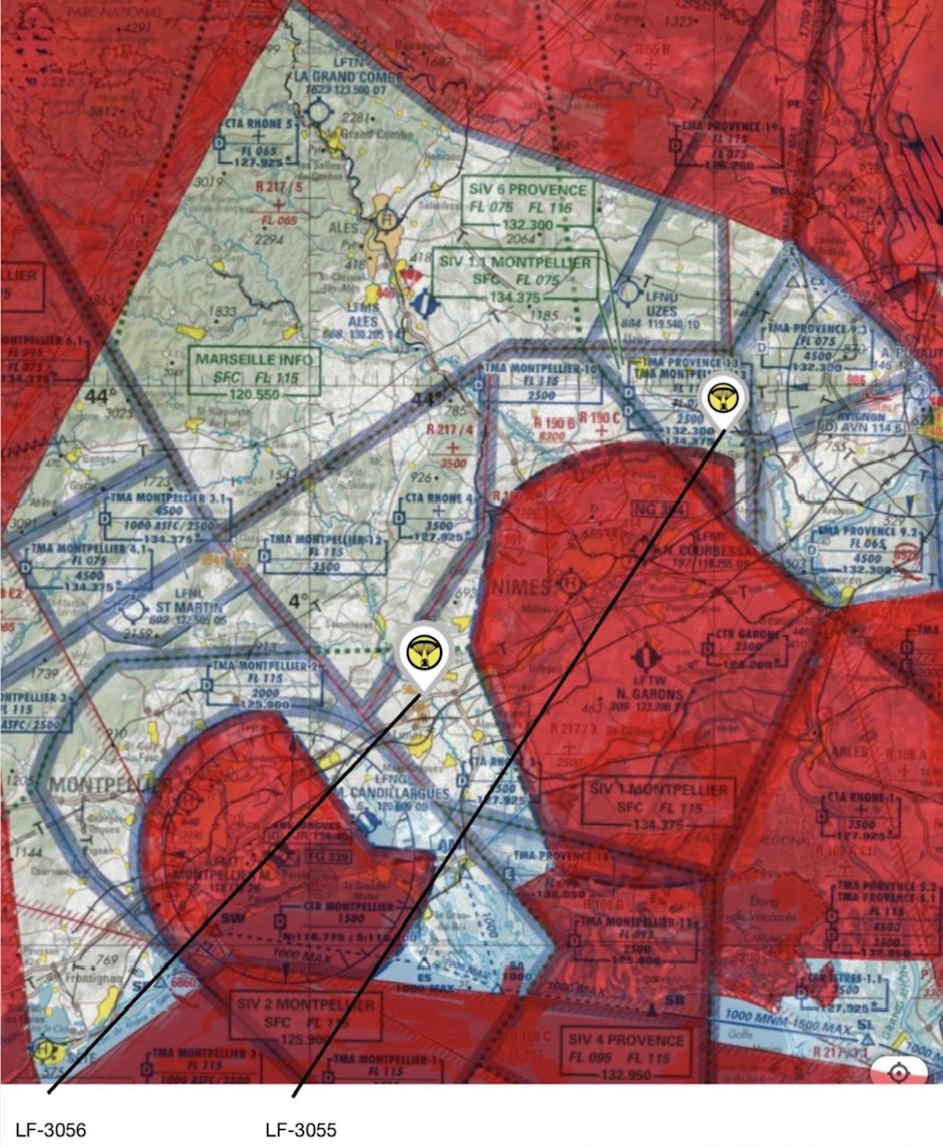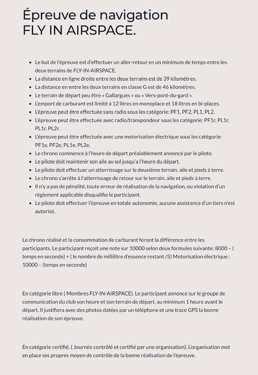 Les décollages sont priorisés aux participants de l'épreuve de Navigation entre les deux terrains LF3055 et LF3056.